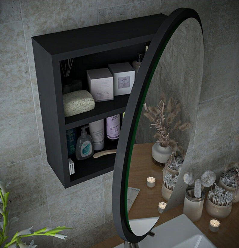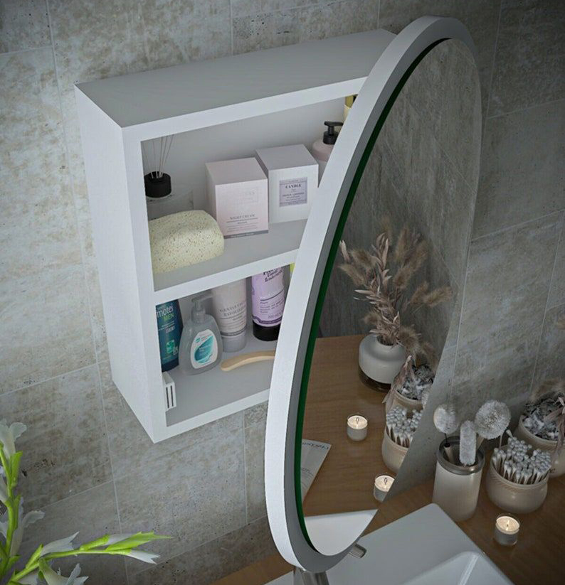Bathroom Mirror Cabinet, Solid Wood Round Bathroom Cabinet with Mirror, Sliding Door, Mirror Cabinet for Bathroom, Bedroom, Living Room Decoration